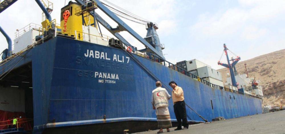 سفينة معونات غذائية إماراتية ترسو في ميناء المكلا اليمني