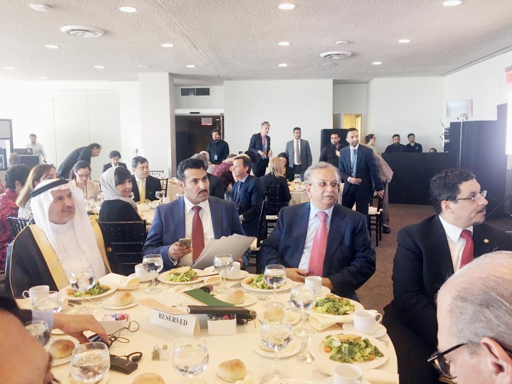 جانب من مشاركة الجانب السعودي في ندوة السلام المستدام في نيويورك أمس. (عكاظ)
