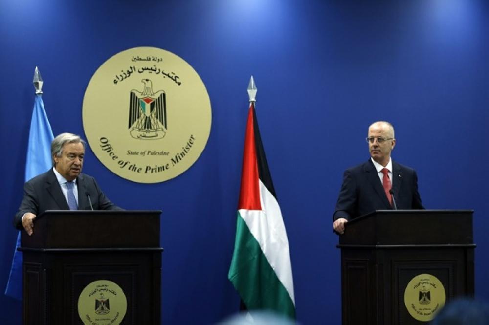 وقال الأمين العام في مؤتمر صحافي مشترك مع الحمدالله إنه "أريد أن أعبر بقوة عن التزام الأمم المتحدة الكامل والتزامي الشخصي الكامل بالقيام بكل شيء من أجل تحقيق حل الدولتين".