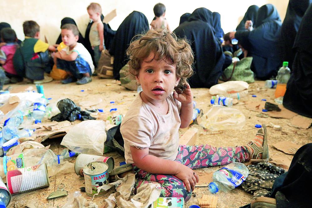 عائلات مسلحي «داعش» يستسلمون لقوات البيشمركة الكردية في العياضية أمس الأول. (رويترز)
