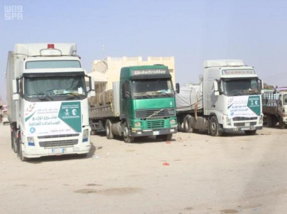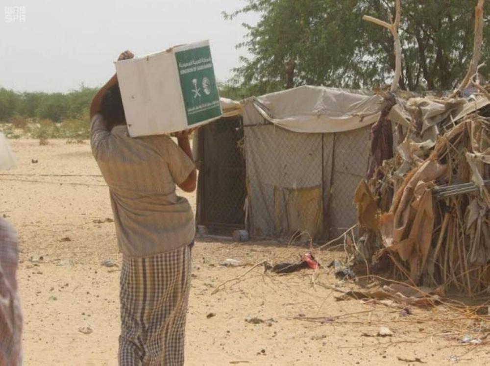 وشمل توزيع المساعدات الغذائية للمستفيدين في مديريات رماه والقف وثمود، احتوت السلة الواحدة على احتياجات الأسرة من المواد الغذائية الأساسية