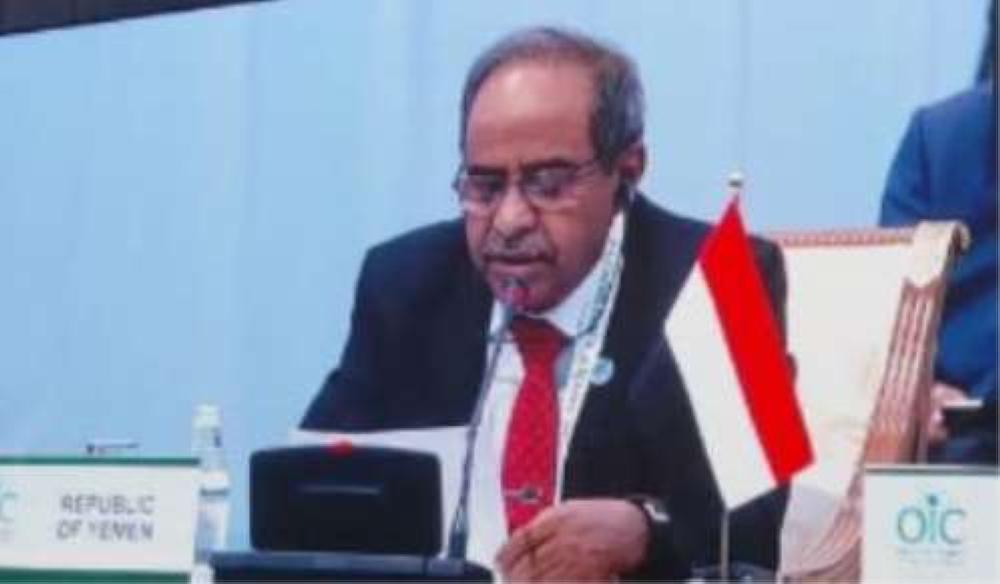 الوزير اليمني أثناء كلمته في مؤتمر أستانا.