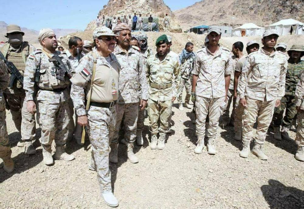 نائب الرئيس اليمني علي الأحمر أثناء زيارته جبهة نهم في صنعاء. (إعلام الجيش)