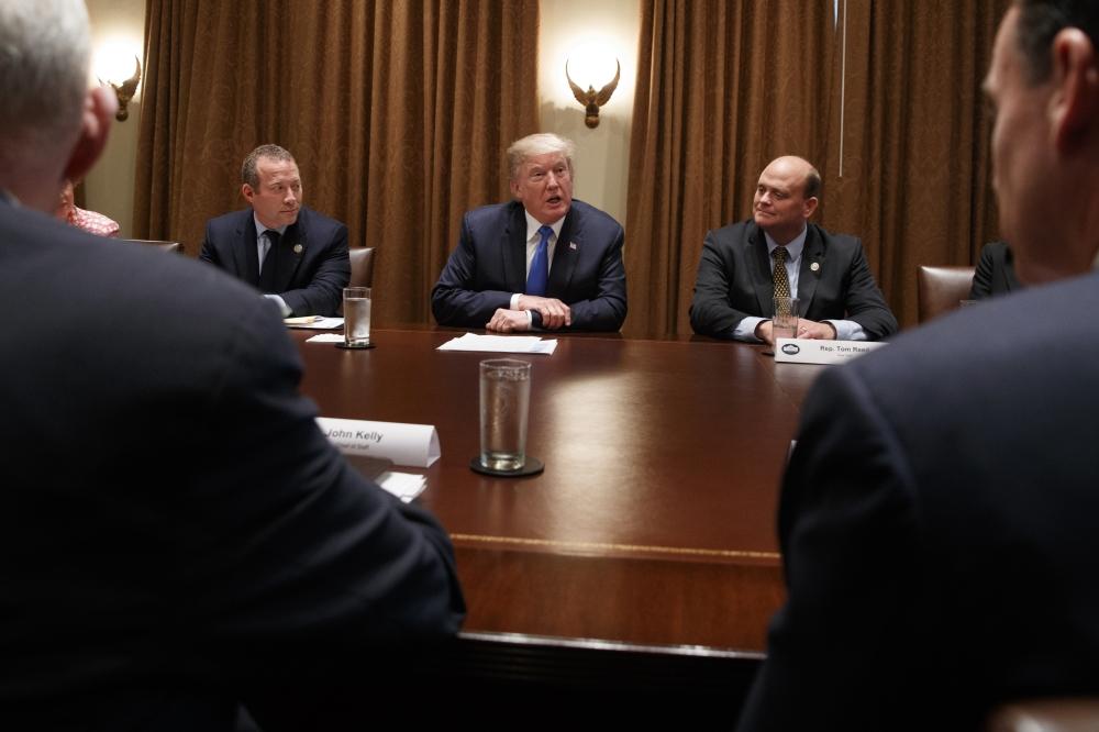 ترمب أثناء حديثه مع المشرعين من الحزبين الجمهوري والديموقراطي في البيت الأبيض.(أ.ب)