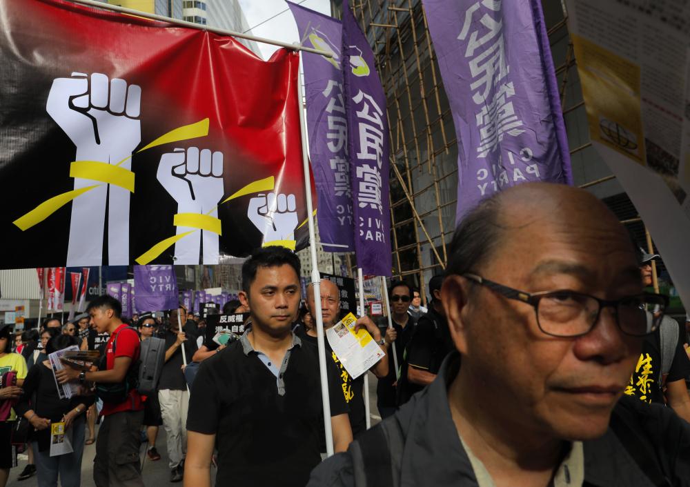 متظاهرون يسيرون في هونغ كونغ اليوم مالأحد تأييدا للديمقراطية