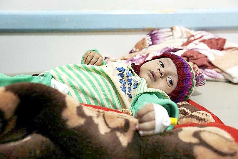 طفلة يمنية مصابة بالكوليرا ترقد في مستشفى بصنعاء. (متداولة)