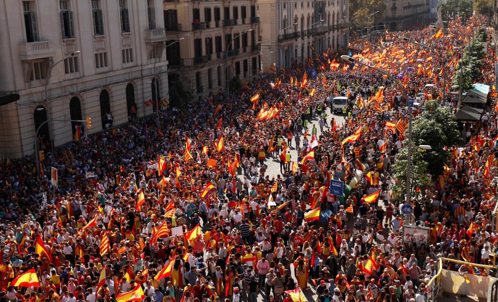 الإسبان يتظاهرون ضد إنفصال كتالونيا