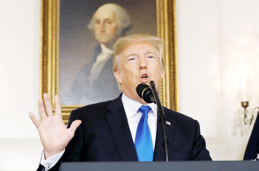 الرئيس ترمب خلال كلمته أمس في البيت الأبيض. (رويترز)