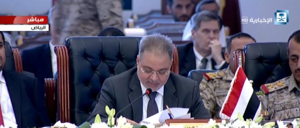 وقال المخلافي أمام اجتماع وزارء خارجية ورؤساء الأركان لدول تحالف دعم الشرعية: "الحرب في اليمن فُرضت علينا، ويجب أن يُعلن المجتمع الدولي الطرف المعرقل لعملية السلام".