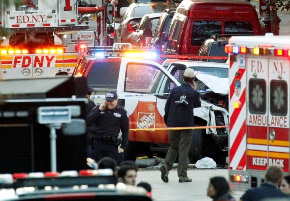 قتل ثمانية أشخاص على الأقل وأصيب أكثر من 10 آخرين بجروح في نيويورك «عمل ارهابي» نفّذه سائق شاحنة صغيرة دهس حشدا من المارة وسائقي الدراجات الهوائية قبل أن تطلق الشرطة النار عليه وتعتقله، كما أعلن رئيس بلدية المدينة.