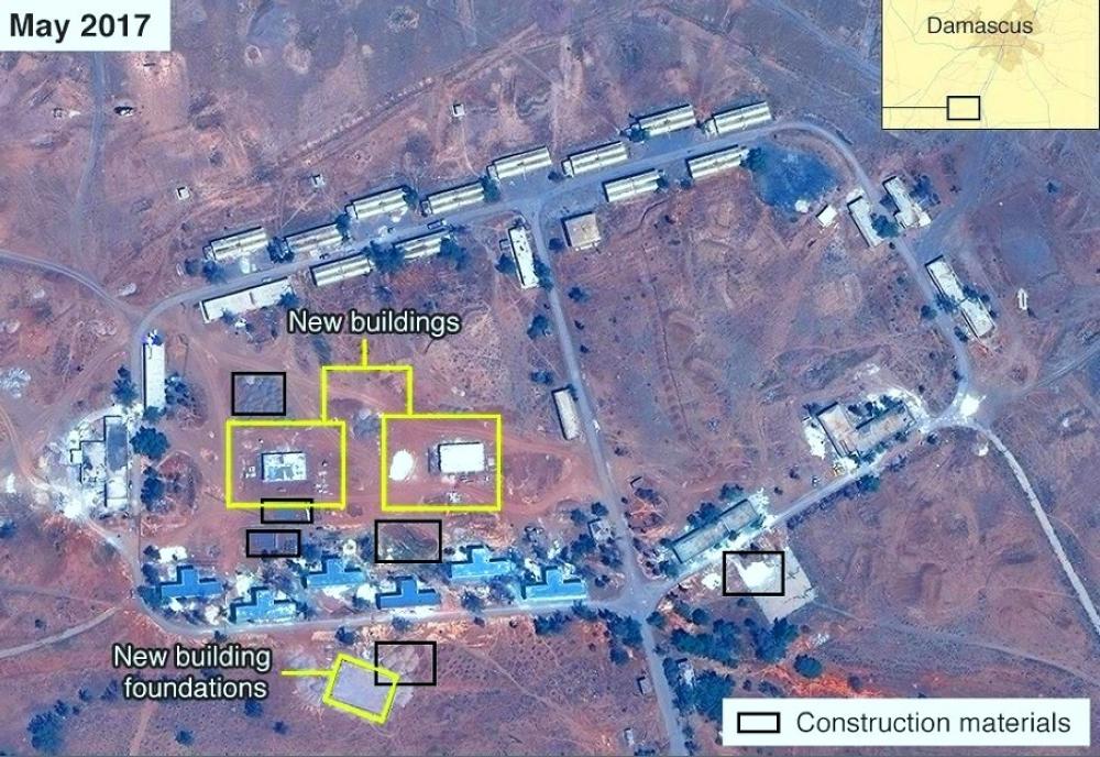 من جهة أخرى كشفت صور التقطتها أقمار اصطناعية ونشرتها هيئة الإذاعة البريطانية على موقعها أمس الأول، أن إيران ترسخ احتلالها ببناء قاعدة عسكرية جنوب دمشق. وأكدت أن البناء يجري في موقع يستخدمه جيش النظام في البادية السورية في ريف دمشق في أقصى الجنوب على مسافة 14 كيلو متراً من دمشق، وأكثر من 50 كيلو مترا من الجولان المحتلة.