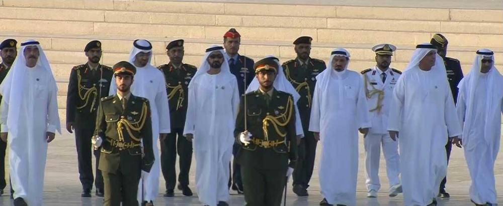 وحضر مراسم الاحتفاء بيوم الشهيد، نائب رئيس الدولة رئيس مجلس الوزراء الشيخ محمد بن راشد آل مكتوم، وولي عهد أبوظبي نائب القائد الأعلى للقوات المسلحة، الشيخ محمد بن زايد آل نهيان.