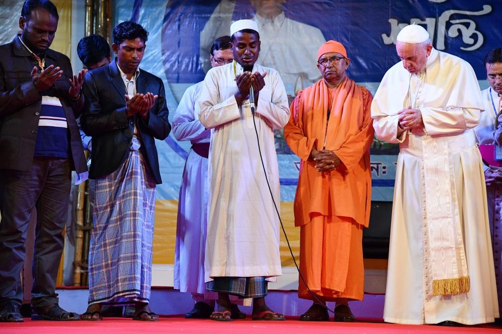 وقال البابا في كلمة مرتجلة بعد الاجتماع مع 16 لاجئا نقلوا إلى داكا عاصمة بنجلادش من مخيماتهم في كوكس بازار قرب الحدود مع ميانمار، إن الله موجود أيضا في قلوب «الروهينغا».