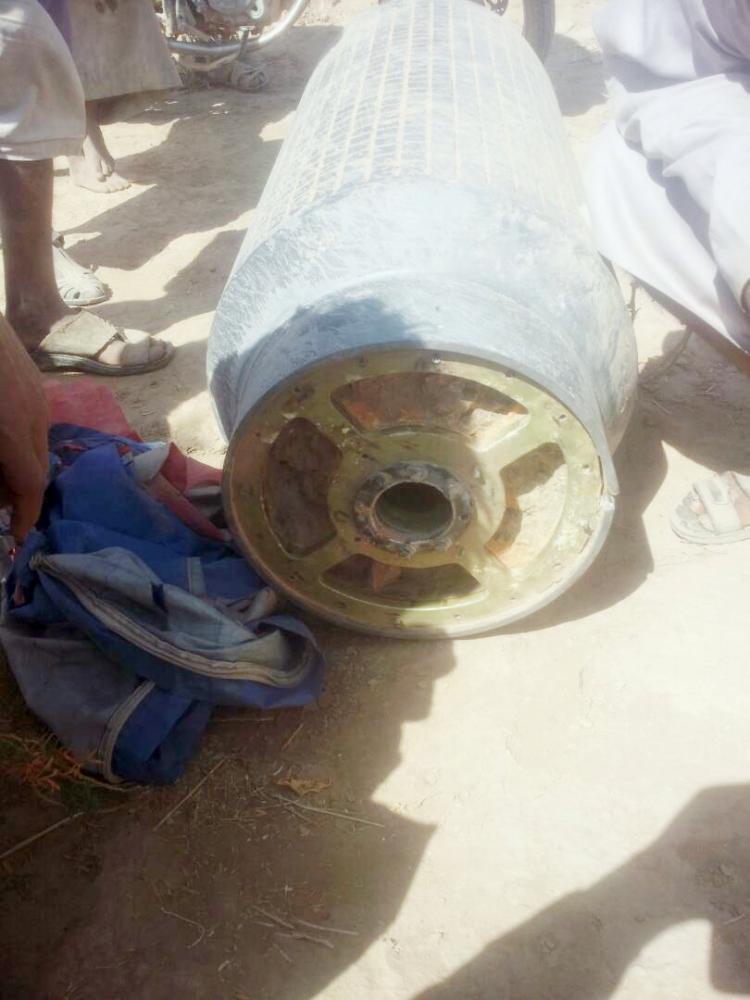 بقايا صاروخ الحوثي الذي سقط في الجوف اليمنية. (متداولة)