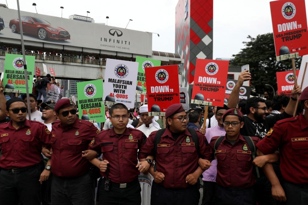 وفي أنحاء العالم العربي والإسلامي، خرج آلاف المحتجين إلى الشوارع اليوم الجمعة للتعبير عن تضامنهم مع الفلسطينيين وغضبهم من الخطوة الأمريكية.