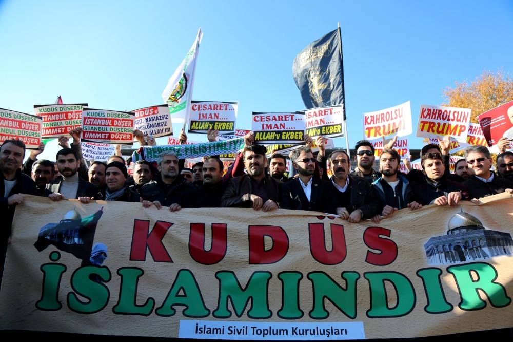 ومع انتهاء صلاة الجمعة في المسجد الأقصى شق المصلون طريقهم صوب أبواب البلدة القديمة ورددوا هتافات "القدس لنا.. القدس عاصمتنا" و "ما بدنا كلام فاضي بدنا كلاشينكوف". ووقعت بعض المواجهات بين المحتجين والشرطة. ووقعت احتجاجات بعد قرار ترمب الاعتراف بالقدس عاصمة لإسرائيل، مخالفا بذلك سياسة أمريكية استمرت عقودا، لكن العنف ما زال إلى الآن تحت السيطرة إلى حد كبير.