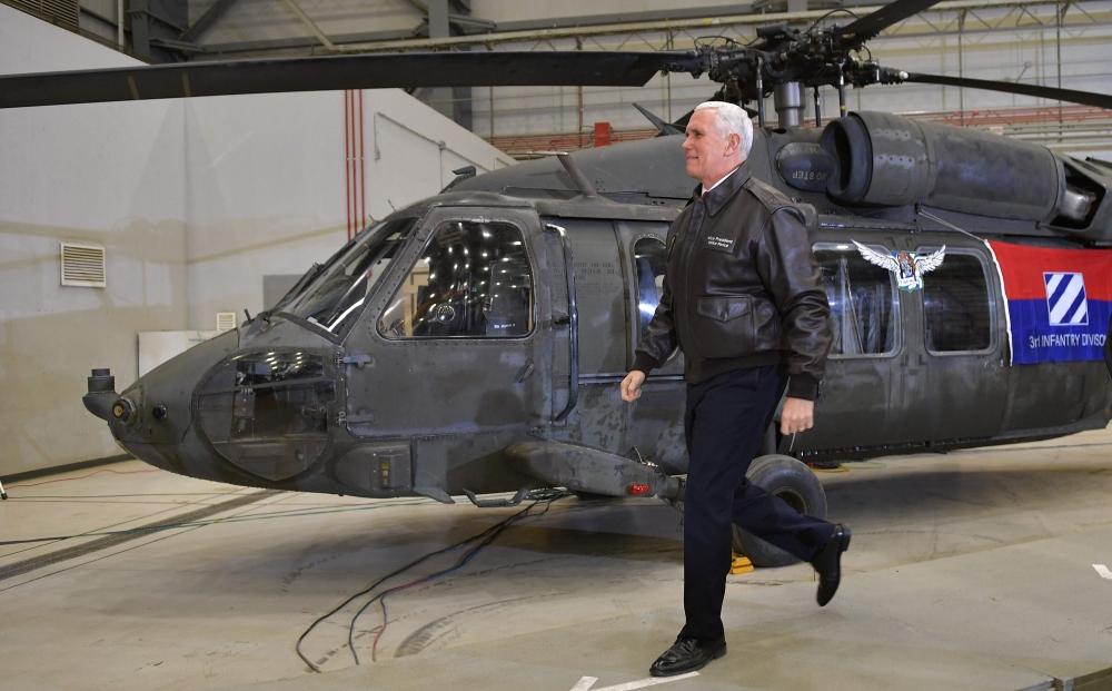 وهبطت الطائرة التي أقلت بنس (وهي من طراز سي-17 تابعة لسلاح الجو الأمريكي) في قاعدة باغرام حيث وجّه تحية شكر إلى الجنود الأمريكيين الـ15 العاملين في هذا البلد والذي سيمضون عيد الميلاد بعيدا عن أسرهم، ثم استقل مروحية أقلته إلى قلب العاصمة كابول حيث التقى الرئيس الافغاني وقال له "لقد اجتزنا سويا مسارا طويلا (...) نحن هنا للمضي حتى النهاية".