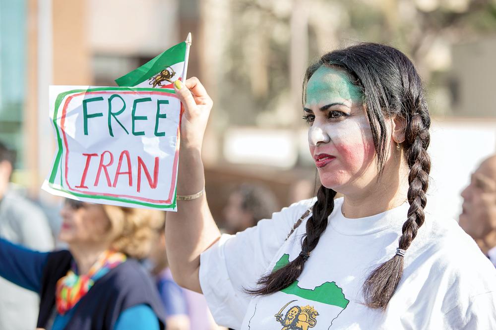 إيرانية ترفع لافتة «إيران حرة» أثناء مشاركتها في مظاهرة داعمة للاحتجاجات المناهضة للنظام في لوس أنجليس أمس الأول. (رويترز)