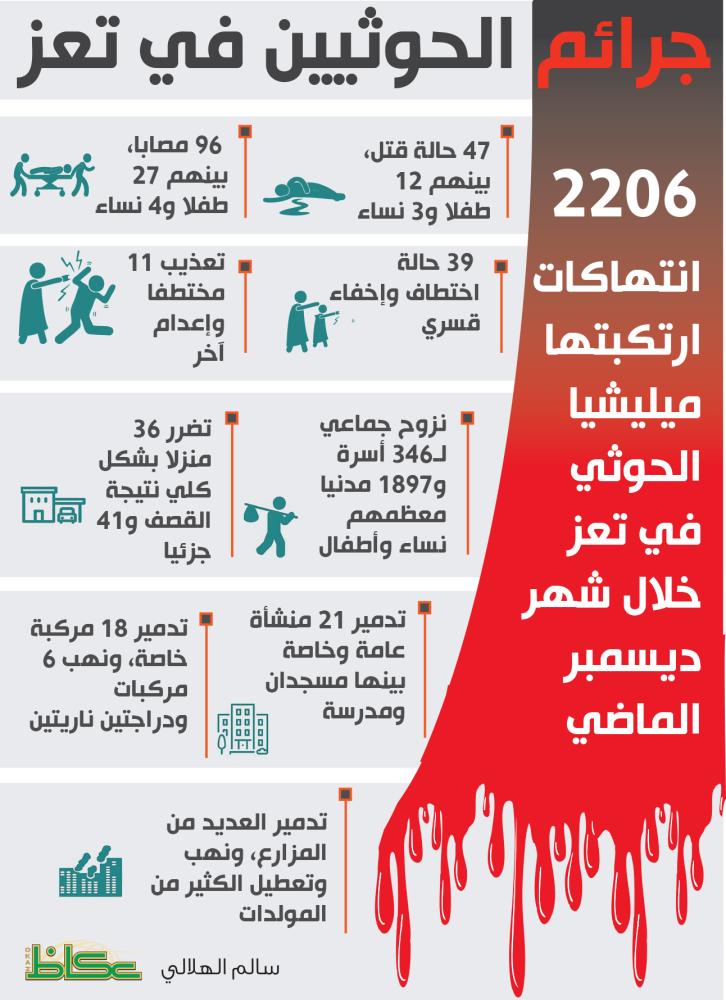 من جهة أخرى، قتل أكثر من 40 مسلحاً حوثياً؛ بينهم قائد عمليات محور ميدي علي عبدالله الحاكم وأسر آخر في مديرية ميدي بمحافظة حجة خلال معارك الـ24 ساعة الماضية، وأوضح مصدر عسكري في المنطقة العسكرية الخامسة أن القياديين الميدانيين عبدالله حسن أبو دنيا وعلي محمد عبدالرحمن أبو دنيا قتلا إلى جانب قائد المحور، كما تم أسر النقيب سمير عبدالله القهالي، مبيناً أن جثث العشرات من المسلحين لا تزال متناثرة في الوديان.