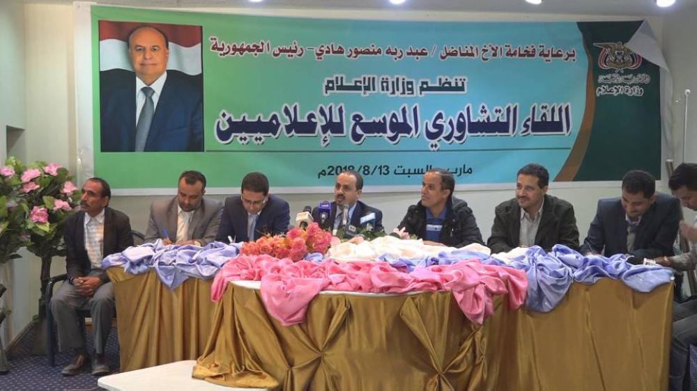 وكرس اللقاء ـ وفقاً ـ لوكالة الأنباء اليمنية الرسمية، لمناقشة واقع إعلام الشرعية في إطار الإرتقاء بالجبهة الإعلامية في المعركة التي يخوضها الشعب اليمني والشرعية بدعم دول التحالف، من أجل استعادة الدولة وإنهاء انقلاب ميليشيا الحوثي الموالية لإيران.