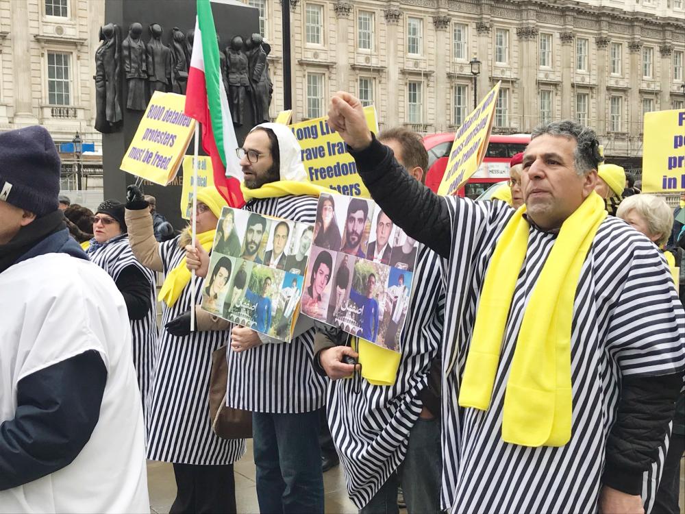 ندد مئات المعارضين الإيرانيين، أمام مقر رئاسة الوزراء البريطانية في لندن أمس (السبت)، بانتهاكات نظام الملالي، وطالبوا بإسقاطه معلنين تضامنهم مع الانتفاضة الشعبية. ودان المتظاهرون التدخل الدموي السافر لأذرع إيران العسكرية في سورية والعراق واليمن. ودعا أعضاء الجمعيات الإيرانية - البريطانية وأنصار تحالف المعارضة الديموقراطية، والمجلس الوطني للمقاومة الإيرانية، رئيسة الوزراء البريطانية تيريزا ماي إلى كسر صمتها على شعبية الانتفاضة في إيران والقمع الوحشي من قبل النظام. وحث المشاركون ماي ووزارة الخارجية على إدانة الحملة الشديدة على المتظاهرين العزل والتي أسفرت عن اعتقال 8000 محتج يواجهون عقوبة الإعدام.