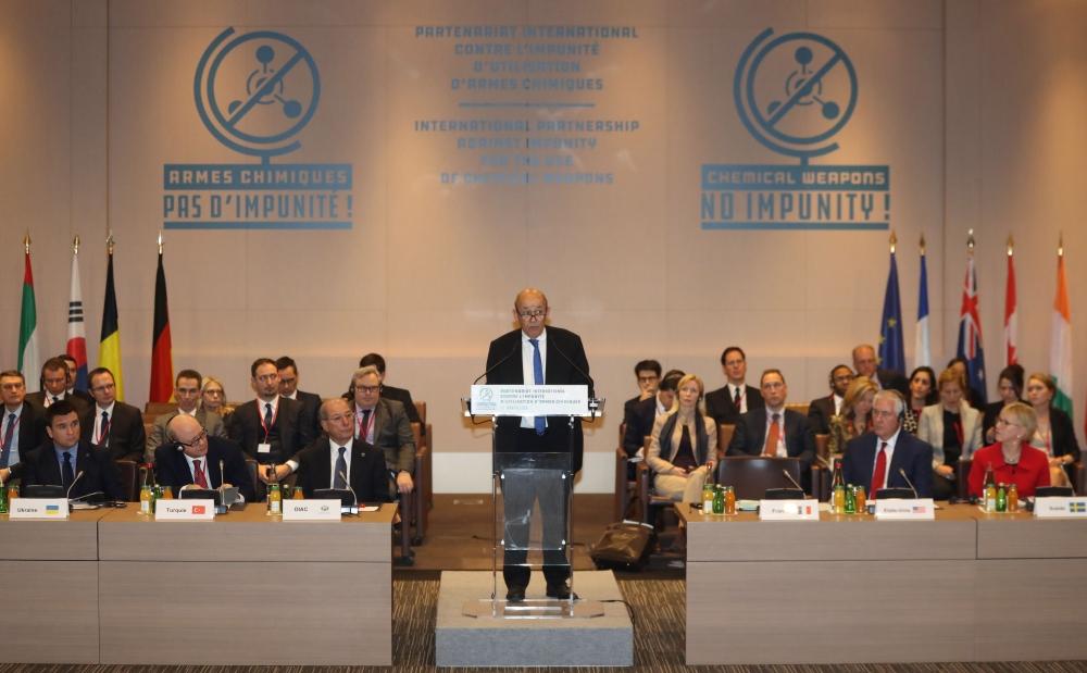 وحذر وزير الخارجية الفرنسي جان ايف لودريان، المجرمين الذي تحملوا مسؤولية استخدام وصنع هذه الأسلحة الوحشية، بأنه "لن يكون هناك افلات من العقاب.