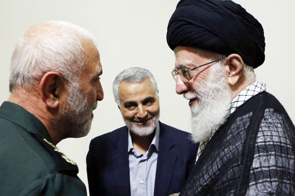 خامنئي متحدثا إلى سلامي وسليماني. (أرشيفية)