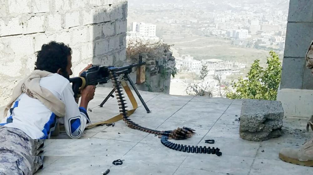 مقاتل من المقاومة الشعبية أثناء المواجهات مع الميليشيات في تعز. (أنس الحاج)