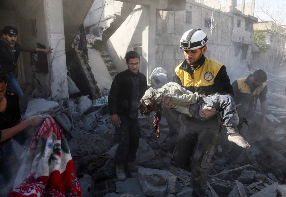وقال المرصد السوري لحقوق الانسان إن أكثر من 200 مدني قتلوا في 4 أيام من الغارات العنيفة لقوات النظام التي استهدفت الغوطة الشرقية المحاصرة قرب دمشق.