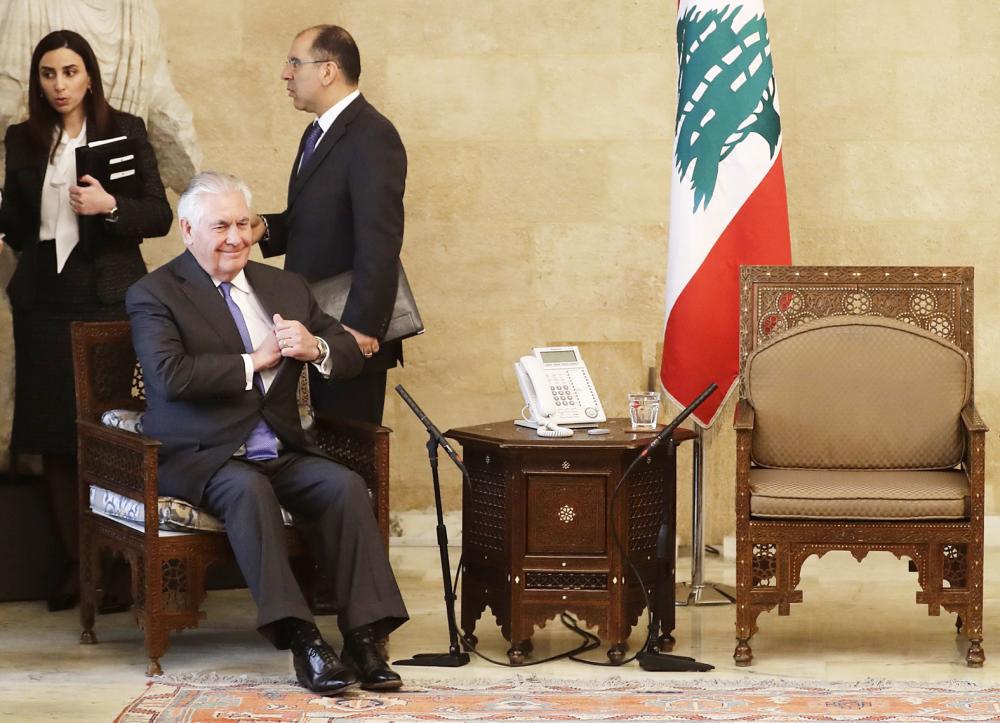 واضطر وزير الخارجية الأمريكي ريكس للانتظار عدة دقائق في قصر الرئاسة اللبناني، قبل أن يستقبله نظيره اللبناني جبران باسيل قبل محادثاته مع الرئيس عون، وأظهرت لقطات تلفزيونية تيلرسون وهو يجلس في غرفة وبجواره مقعد شاغر قبل أن يدخل باسيل ويصافحه فيما بدا خروجا على العرف الدبلوماسي.