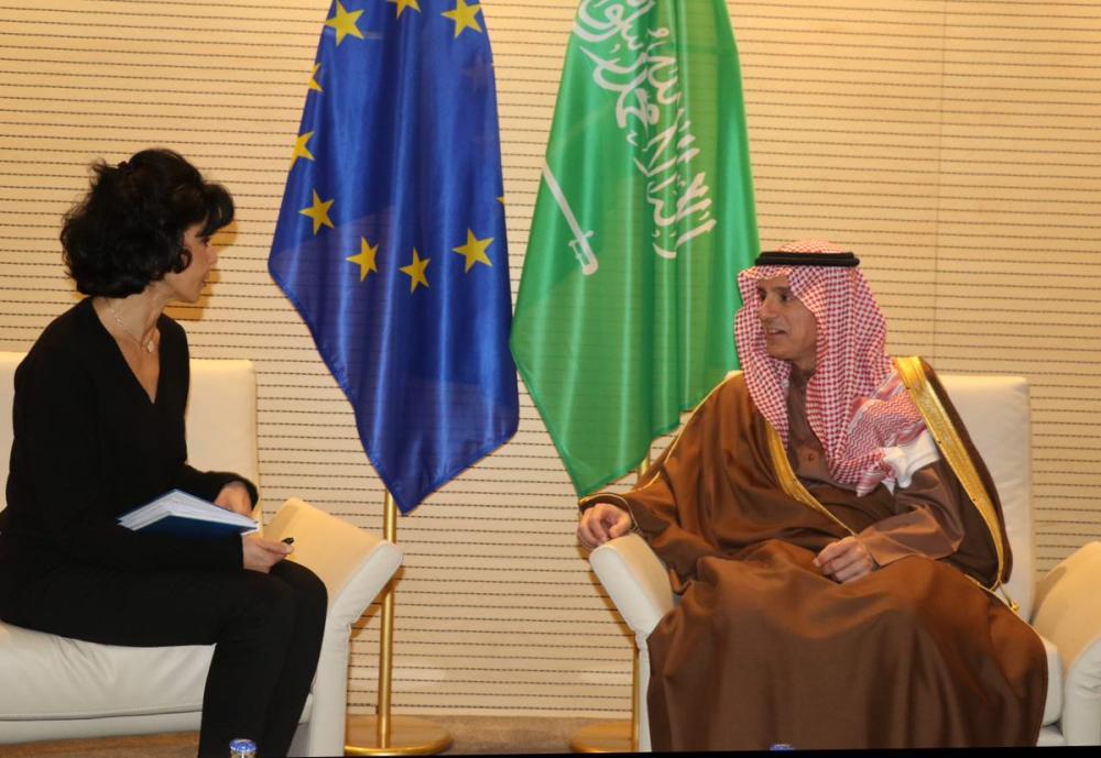 ناقش وزير الخارجية عادل بن أحمد الجبير في بروكسل اليوم، مع الممثلة العليا للسياسة الخارجية والأمن في الاتحاد الأوروبي السيدة فدريكا موغيريني، قضايا المنطقة وتطوراتها بالإضافة إلى بحث الموضوعات ذات الاهتمام المشترك.