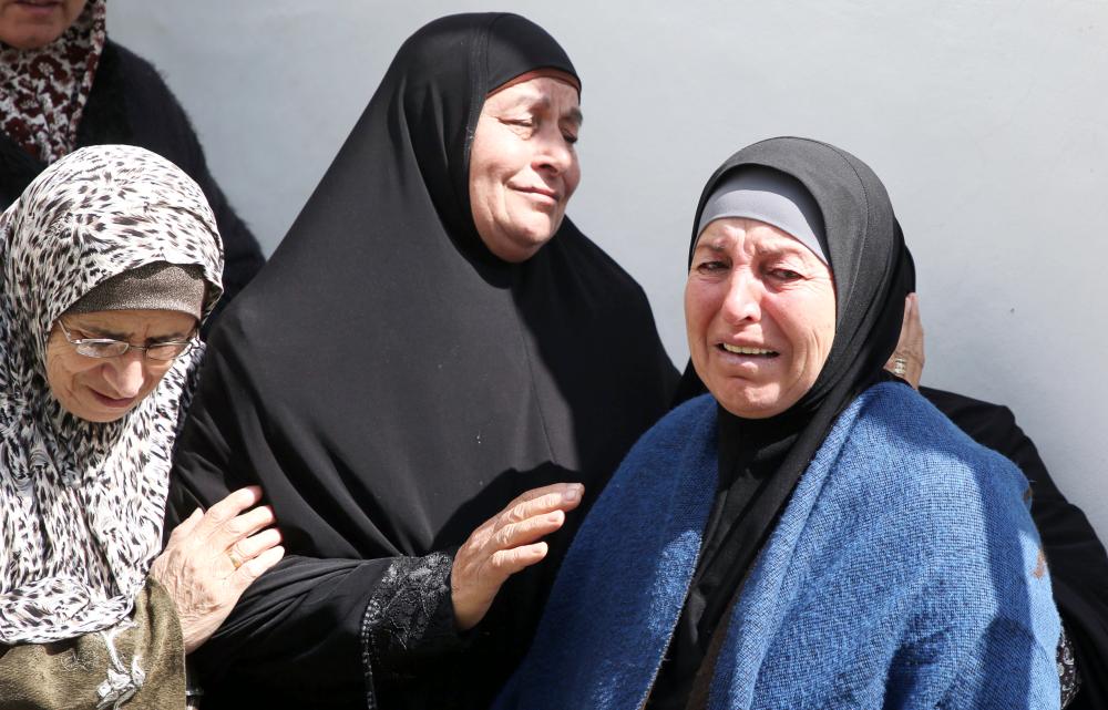 فلسطينيات يبكين أمس في تشييع جنازة شاب قتل برصاص الاحتلال قرب نابلس. (أ.ف.ب)