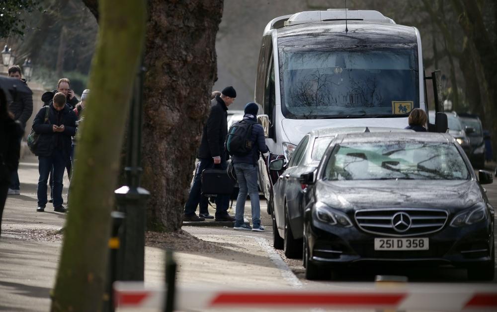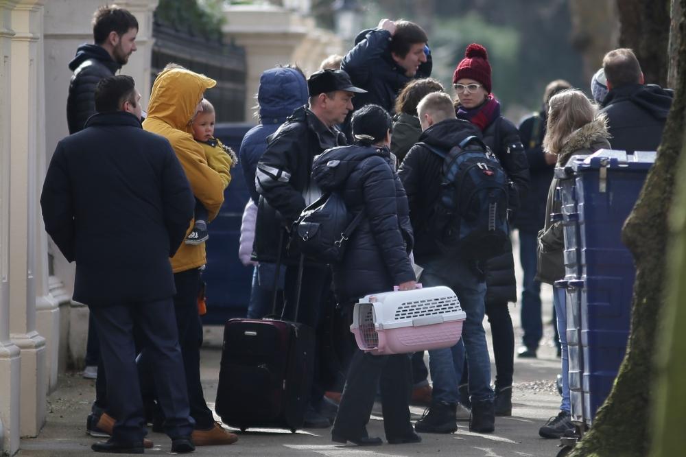 وغادرت ثلاث حافلات تحمل أرقاما دبلوماسية السفارة الروسية في لندن اليوم الثلاثاء وقال مصور رويترز في الموقع إن العاملين بالسفارة لوحوا للدبلوماسيين المغادرين وأسرهم بينما كانت الحافلات تبتعد.