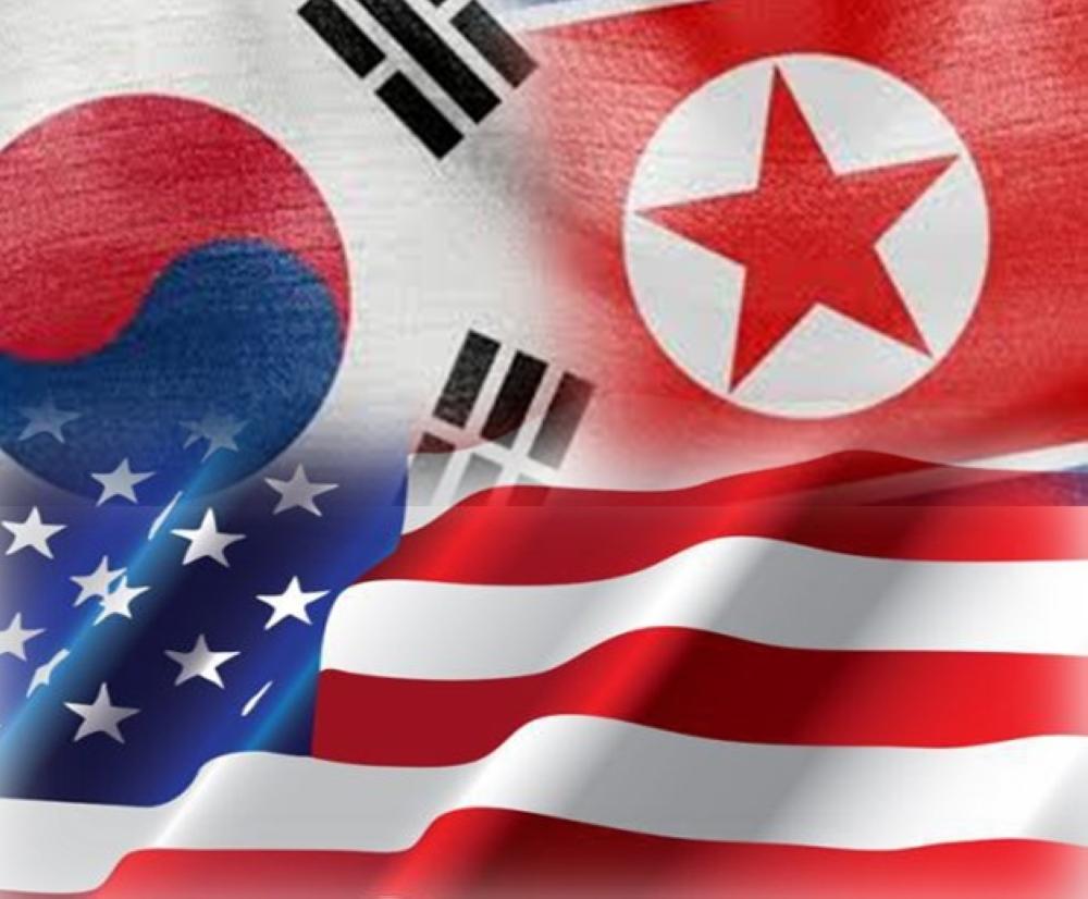 أعلام الكوريتين الشمالية والجنوبية وأمريكا