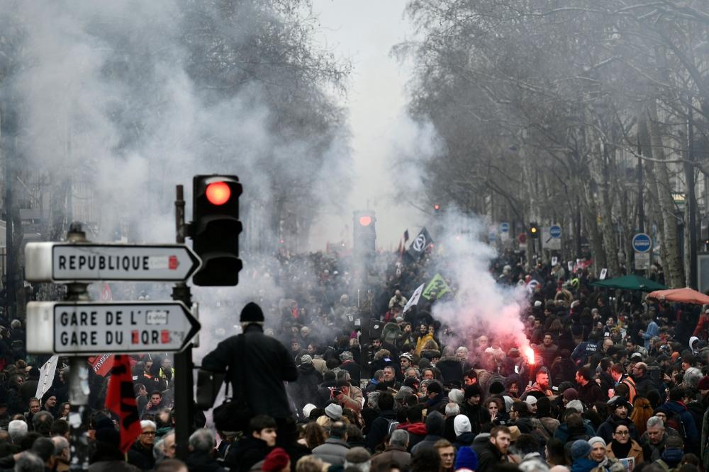 وتوقف عمال تذاكر القطارات ومعلمون ومراقبون جويون عن العمل، وشاركوا في أكثر من 150 مسيرة، اتسمت أغلبها بالسلمية، في أول مرة ينضم فيها موظفون في القطاع العام لموظفي السكك الحديدية احتجاجات منذ تولي ماكرون السلطة في مايو الماضي.