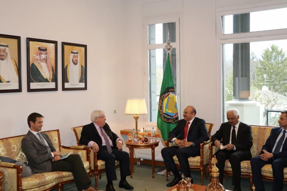 اجتمع الأمين العام لمجلس التعاون لدول الخليج العربية الدكتور عبداللطيف بن راشد الزياني، في مقر بعثة مجلس التعاون في جنيف مساء اليوم (الإثنين)، مع المبعوث الخاص للأمين العام للأمم المتحدة إلى الجمهورية اليمنية مارتن جريفيث، على هامش أعمال المؤتمر الدولي رفيع المستوى لدعم خطة الاستجابة لإغاثة الجمهورية اليمنية في مدينة جنيف.