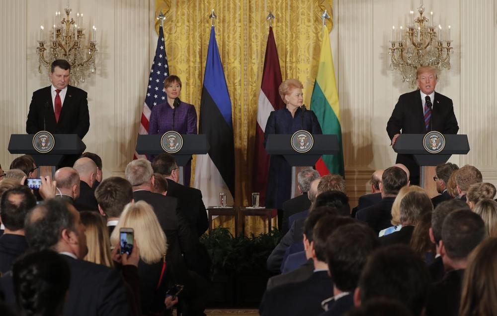 وأضاف ترمب خلال مؤتمر صحفي إلى جانب رؤساء 3 دول من البلطيق، أن المهمة الأساسية في هذا الصدد هي التخلص من تنظيم داعش الإرهابي.