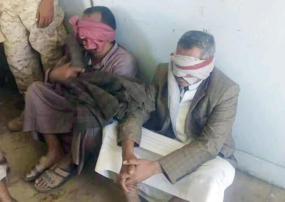 مسؤول إمدادات الحوثيين وأحد مرافقيه في قبضة الشرعية في محافظة البيضاء أمس. (إعلام الجيش)