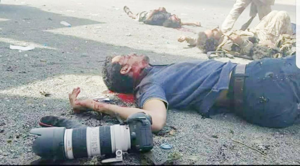 وأشارت إلى أن مقاتلات التحالف دمرت تعزيزات حوثية في منطقة السوادية شرق المحافظة. من جهة أخرى، قتل صحفي وأصيب ثلاثة آخرون أمس في قصف لميليشيا الحوثي أثناء تغطيتهم الأحداث في جبهة قانية بمحافظة البيضاء. وأفاد مصدر صحفي بأن القصف الحوثي أسفر عن مقتل المصور عبدالله القادري، وإصابة الصحفيين: خليل الطويل، ووليد الجعوري، وذياب الشاطر.