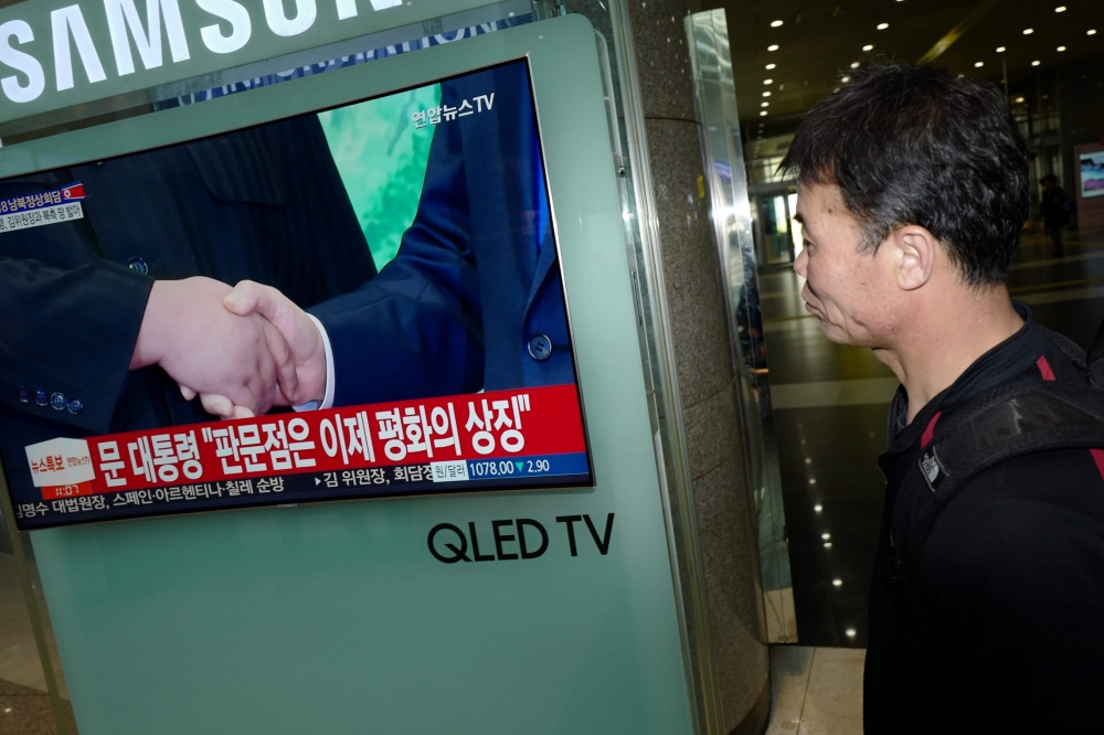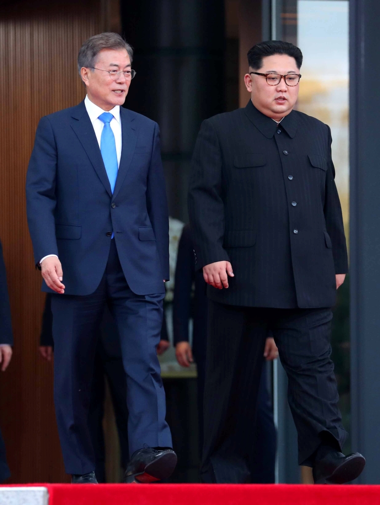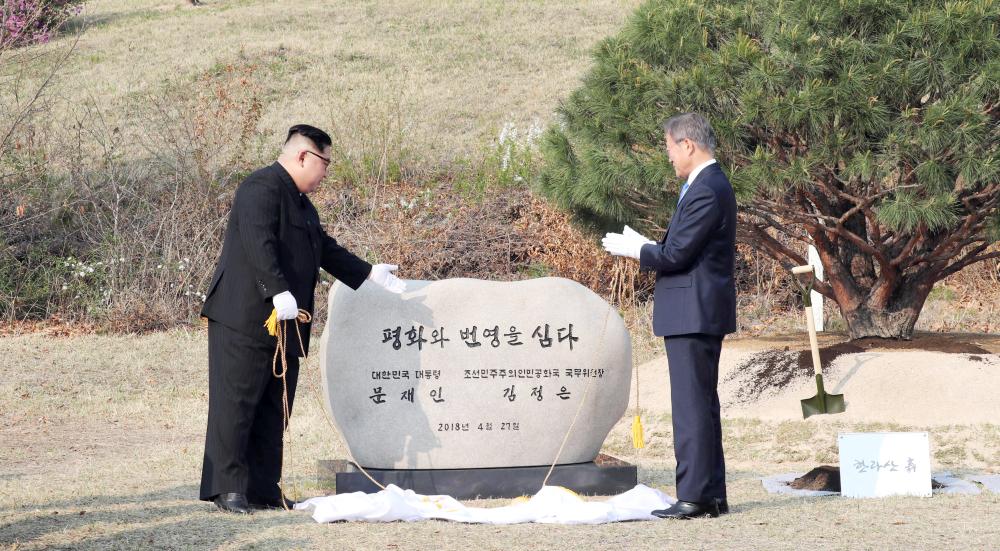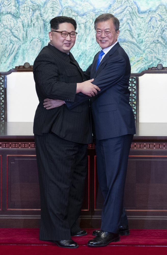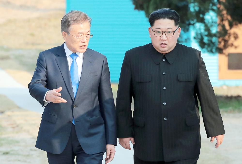 عند خط ترسيم الحدود العسكرية، وفي المنطقة منزوعة السلاح شديدة التحصين بين البلدين، تعهد زعيم كوريا الشمالية كيم جونغ أون ورئيس كوريا الجنوبية مون جيه-إن، أمس (الجمعة)، بالسعي لتحقيق السلام، ووقعا إعلانا يتضمن الموافقة على العمل من أجل نزع السلاح النووي بالكامل من شبه الجزيرة الكورية، كما أعلنا خلال أول قمة بين الجانبين منذ أكثر من عقد، أنهما سيعملان على التوصل إلى اتفاق لتحقيق سلام «دائم» و«راسخ» في شبه الجزيرة.