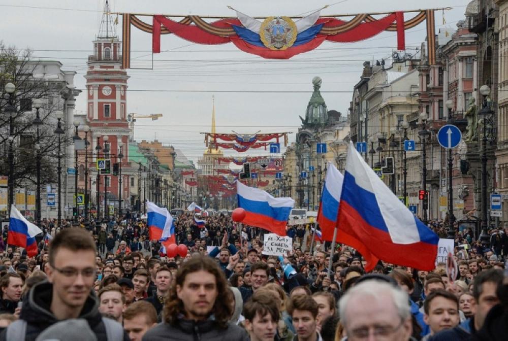 واعتقل المعارض نافالني إلى جانب نحو 1600 من أنصاره السبت أثناء مسيرات خرجت في أنحاء البلاد ضد بوتين بينما استخدمت الشرطة ومجموعات شبه عسكرية القوة لتفريق المظاهرات في موسكو وسان بطرسبورغ.