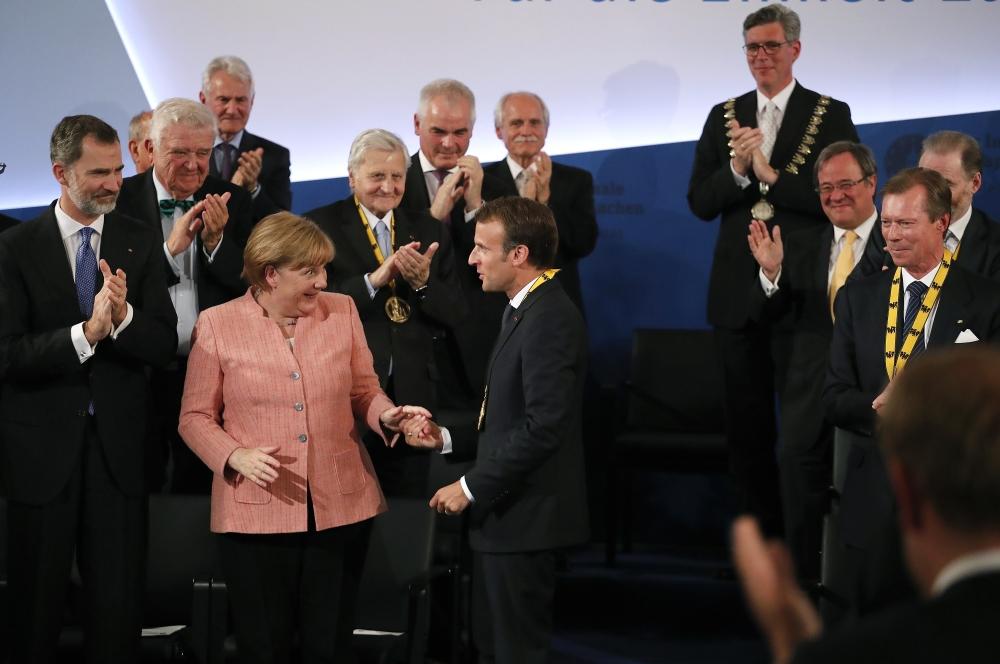 وقالت ميركل في كلمة أثناء تسلم ماكرون لجائزة شارلمان الرفيعة في ألمانيا "نعلم أن الوضع معقد للغاية".