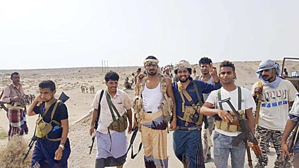 أفراد من المقاومة أثناء التقدم في مديرية التحيتا أمس. (إعلام الجيش)