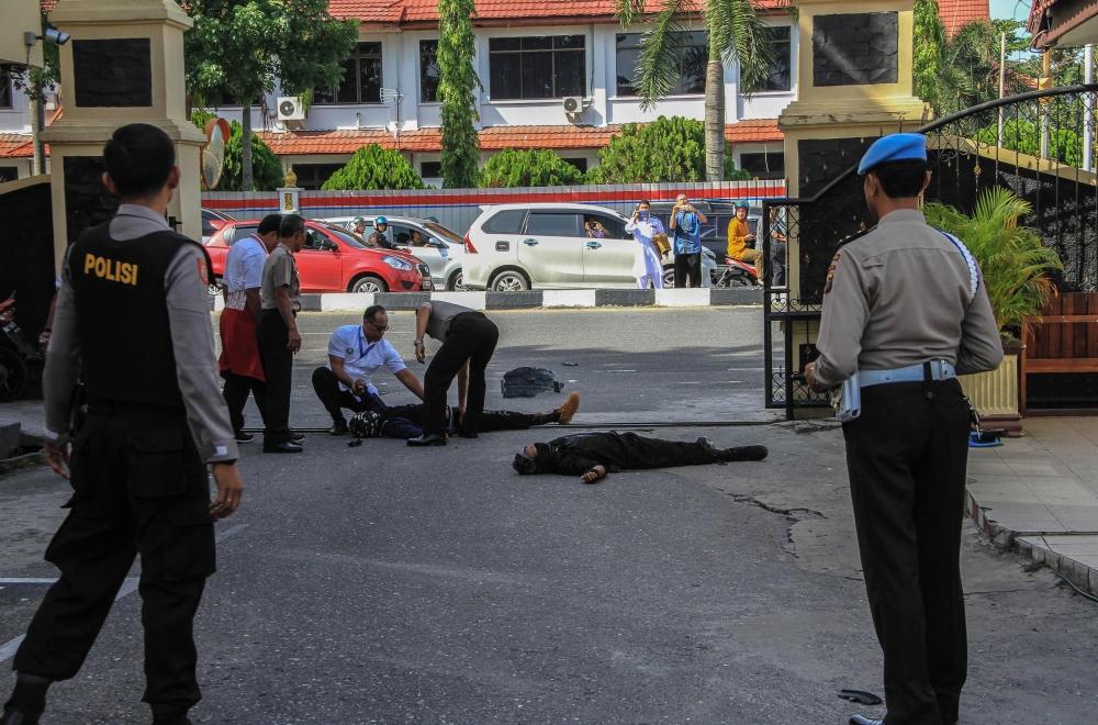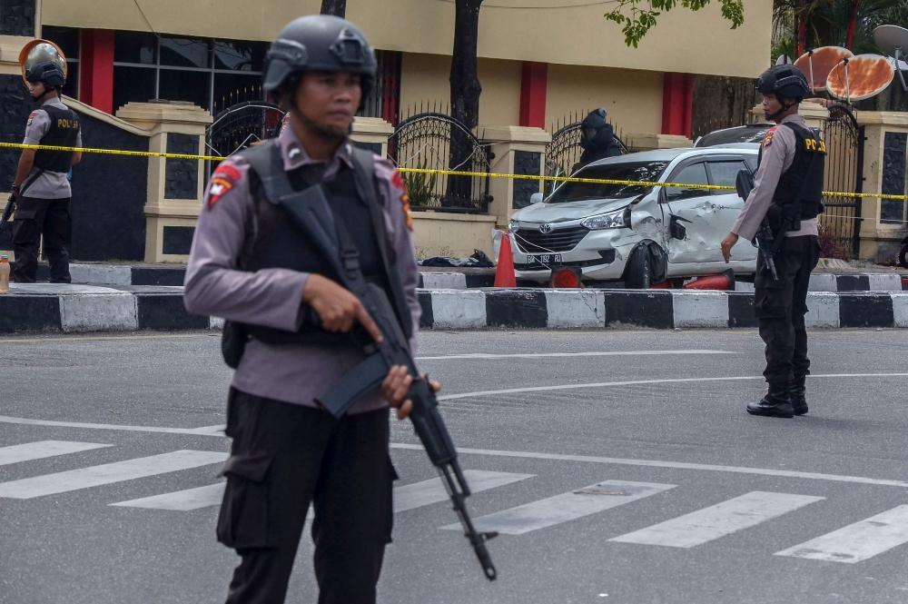 قتلت قوات الأمن الإندونيسية، اليوم (الأربعاء)، أربعة مسلحين هاجموا بسيوف مركزا للشرطة في شمال غرب البلاد ما أدى إلى مقتل شرطي حسبما أعلنت السلطات، بعد بضعة أيام من تفجيرات انتحارية هزت البلاد وتبناها تنظيم «داعش».