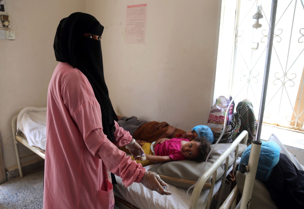 Yemeni children suspected of having been infected by cholera are treated at a hospital in the Yemeni coastal city of Hodeidah on May 26, 2018. More than 2,200 people have reportedly died of cholera over the past year in Yemen, with another one million suspected cases across the country. / AFP / ABDO HYDER