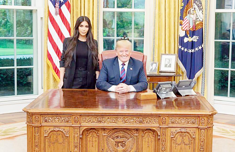 بوساطة من ابنته إيفانكا، التقى الرئيس دونالد ترمب (الأربعاء) نجمة تلفزيون الواقع كيم كارديشيان التي قضت نحو ساعة بالبيت الأبيض، التقت خلالها زوج ابنة الرئيس جاريد كوشنر. وقال ترمب، في تغريدة، إن كارديشيان بحثت معه إصلاح السجون، وطلبت منه العفو عن امرأة عمرها 63 عاماً سجنت مدى الحياة بجريمة مخدرات. ونشر ترمب صوراً له مع كارديشيان في المكتب البيضاوي. وبعد لقائها مع الرئيس، ذهبت كارديشيان إلى منزل كوشنر وإيفانكا. وتزامن لقاء ترمب وكيم مع محادثات مكثفة يجريها وزير خارجيته مايك بومبيو مع جنرال كوري شمالي بشأن القمة المرتقبة بين الرئيس الأمريكي ونظيره الكوري الشمالي كيم أون جونغ في سنغافورة في 12 يونيو الجاري.