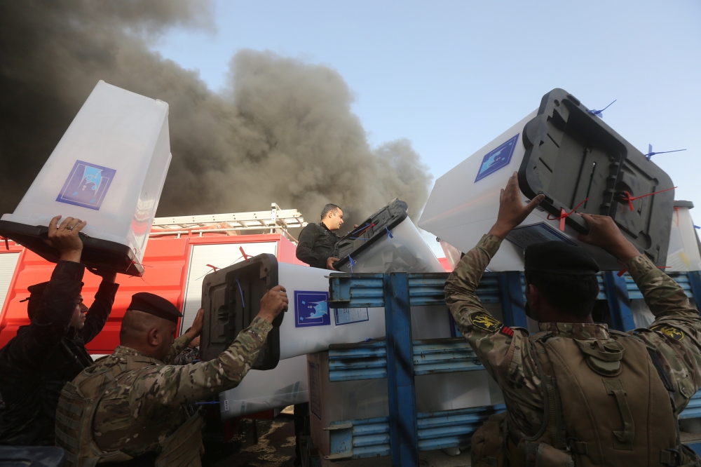 وصناديق الاقتراع جزء من عملية إعادة الفرز اليدوي للأصوات في الانتخابات، وكان البرلمان قد أقر (الأربعاء) الماضي قانونا بإعادة فرز الأصوات يدويا على مستوى البلاد. وأوضح عضو محافظة بغداد محمد الربيعي أن مخازن وزارة التجارة التي بها كل صناديق الرصافة احترقت. وأضاف أن الدفاع المدني جاء ليطفئ وينتشل الصناديق لكن كل الصناديق والأوراق احترقت. في سياق متصل، عقد مجلس القضاء الأعلى في العراق أمس جلسة شهدت تسمية القضاة المنتدبين للقيام بصلاحيات مجلس المفوضين في المفوضية العليا المستقلة للانتخابات، وذلك عقب مزاعم بحدوث انتهاكات واسعة النطاق في الانتخابات البرلمانية الشهر الماضي.