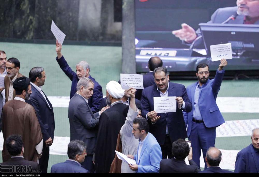 ورفع بعض النواب المتشددين لافتات تندد بالاتفاقية وهتفوا بأنها تستهدف «فصائل المقاومة»، وهو مصطلح تستخدمه إيران للجماعات المصنفة إرهابيا والميليشيات الطائفية التابعة لها في المنطقة.