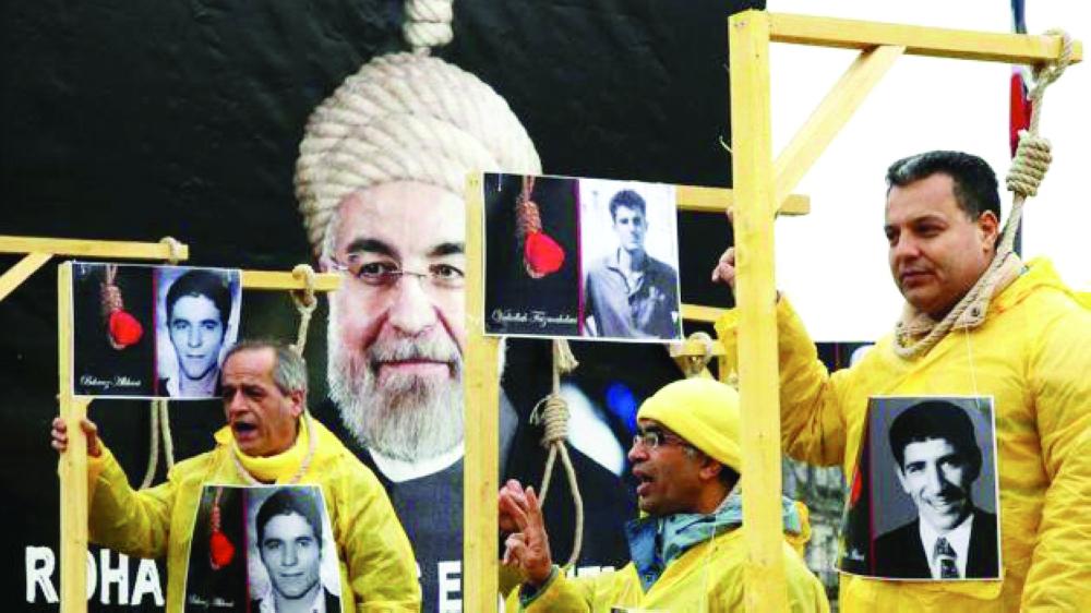 متظاهرون إيرانيون ينددون بزيارة روحاني إلى فيينا أمس. (عكاظ)