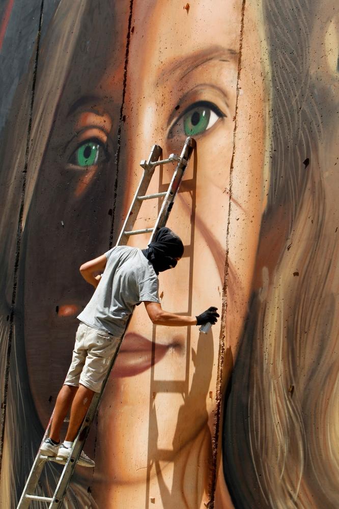 و(الأربعاء) عرف رجل كان يرسم الجدارية عن نفسه بأنه فنان الشارع الإيطالي جوريت اغوش.